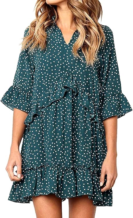 Damen Mode V Ausschnitt Kurzarm Blusenkleider Mit Knopfe Sommer Druck Kleid Mit Ruschen Mini Strandkleider Casual Lose T Shirt Kleider Partykleider Amazon De Bekleidung