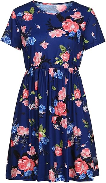 Woweal Sommer Damen Minikleid Freizeit Blumen Kleid Strandkleider Blusenkleider Mode Rundhals Halbe Hulse Bandagen Kleider Partykleid Cocktailkleid Abendkleider Ballkleid Amazon De Bekleidung