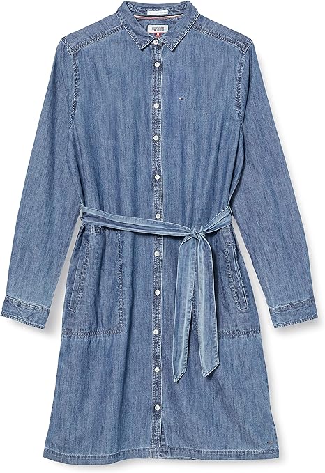 Tommy Jeans Damen Basic Denim Langarm Blusen Kleid Amazon De Bekleidung