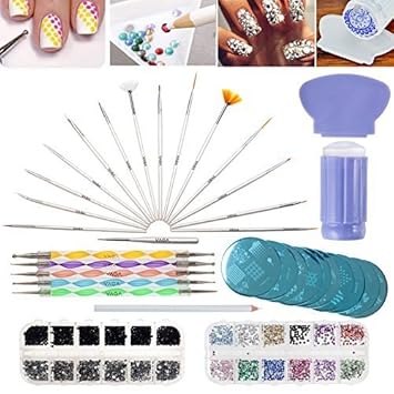 Vaga Nagelset Fur Nail Art Werkzeugkoffer Mit Deko Glitzersteine Zum Aufkleben Auf Nagellack Nagel Stempelset Stamping Schablone Dotters Swirl Fur Nail Polish Und Acrylpinsel Fur Nagel Set Anfanger Amazon De Beauty