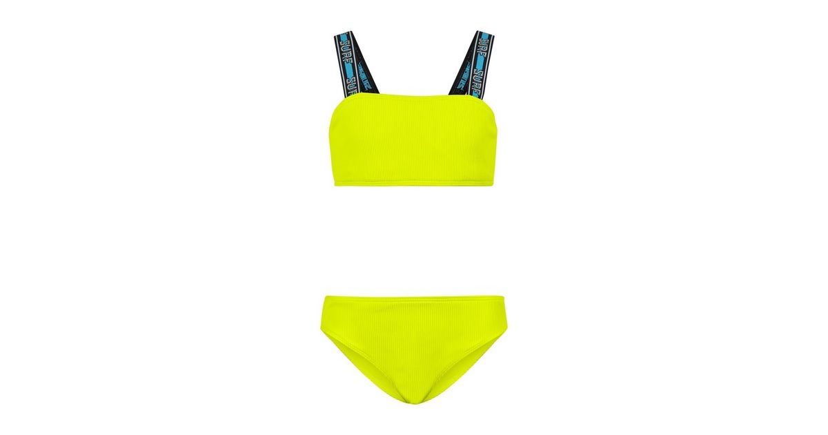 Girls Neongelber Bikini Mit Surf Slogan New Look