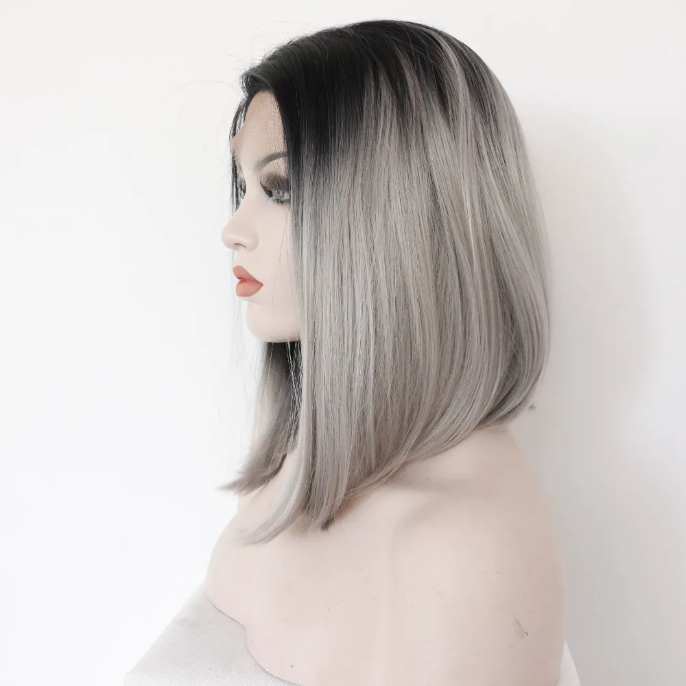 Mode Grau Synthetische Vordere Spitzeperucke Glueless Ombre Naturliche Schwarz Silber Grau Kurze Bob Hitzebestandig Haar Perucken Fur Frauen Wig Pro Wigs Wig Heads For Salewig Carnival Aliexpress