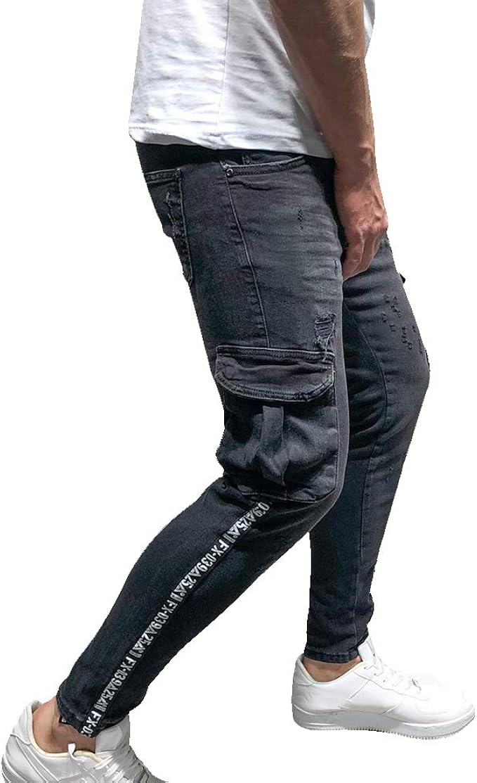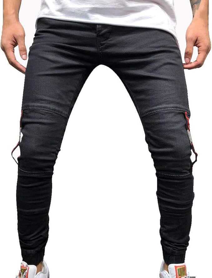 Geurzc Jeans Herren Jeanshose Slim Fit Skinny Denim Stretch Patches Hose Fur Manner Schwarz Amazon De Bekleidung