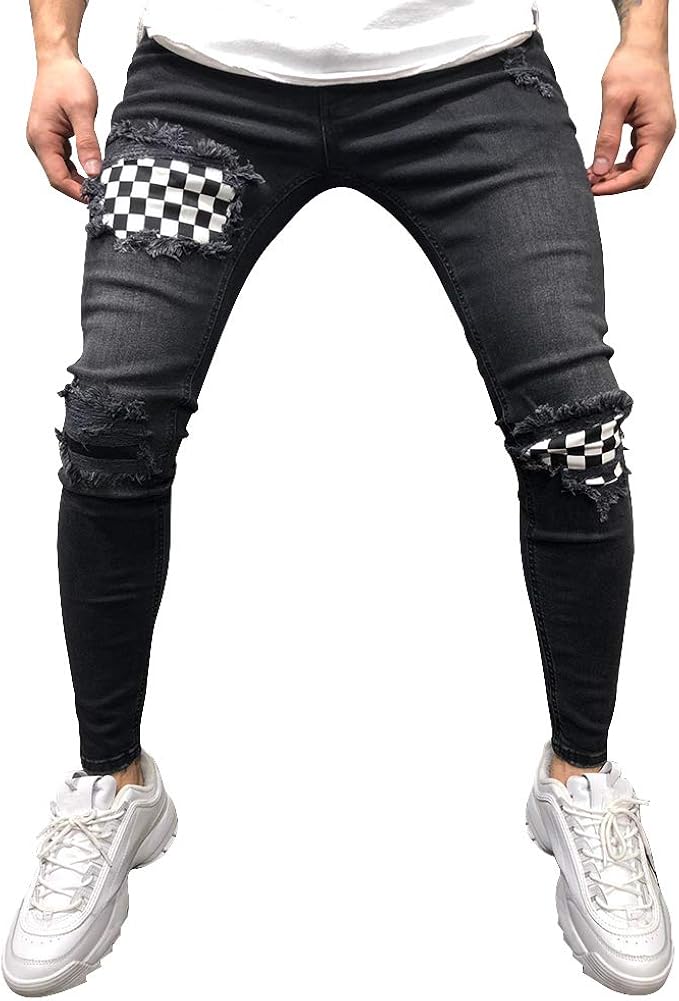 Celucke Vintage Destroyed Jeans Herren Skinny Stretch Jeanshosen Mit Flicken Manner Zerrissene Rohrenjeans Denim Hosen Amazon De Bekleidung