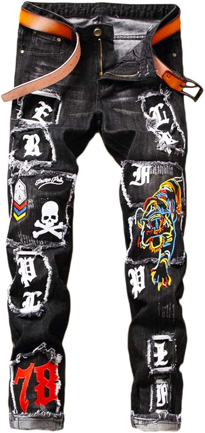 Celucke Enge Jeans Herren Mit Abstraktes Muster Und Flicken Manner Jeanshosen Skinny Stretch Herbst Winter Hosen Jetzt Unschlagbar Gunstig Shopping24 De
