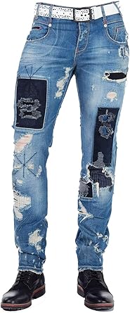 Cipo Baxx Herren Destroyed Jeans Hose Slim Fit Frayed Used Denim Mit Flicken Und Ziernahte Blau W34 L34 Amazon De Bekleidung