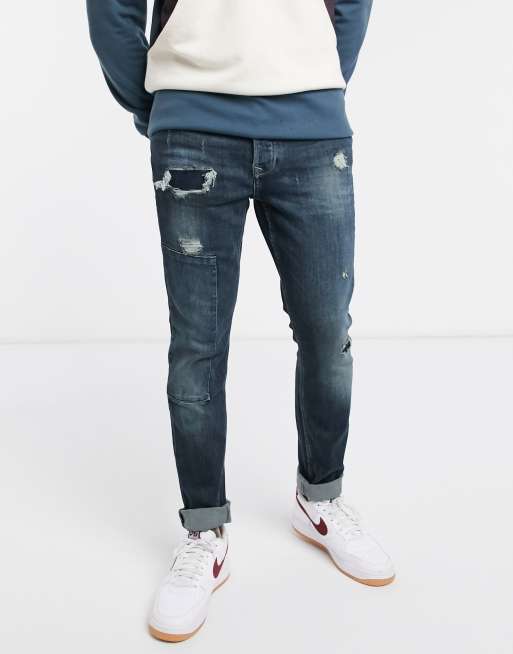 Mjg Destroyed Denim Patches 3 0 Blue Streetwear Manner Skinny Jeans Manner Jeans Manner