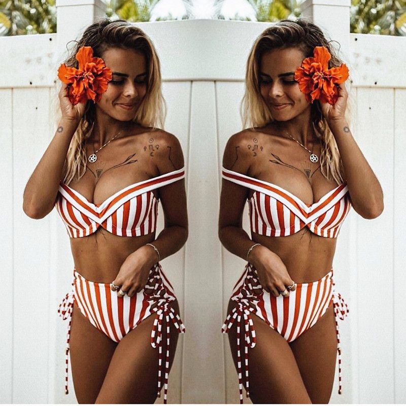 Swimsuit Female High Waist Swimming Suit For Women Boho Stripes Halter Push Up Bandeau Bikini Set Two Piece Swimsuits Mayo Body Suits Aliexpress