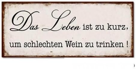 Vintage Blechschild Mit Spruchen Und Weisheiten Im Shabby Look Leben Ist Zu Kurz Fur Schlechten Wein Amazon De Kuche Haushalt