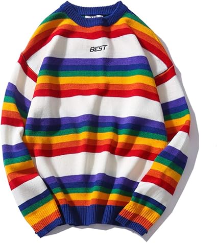 Joykk Herren Damen Oversized Pullover Rainbow Striped Rundhals Pullover Strickoberteile Weiss M Amazon De Kuche Haushalt