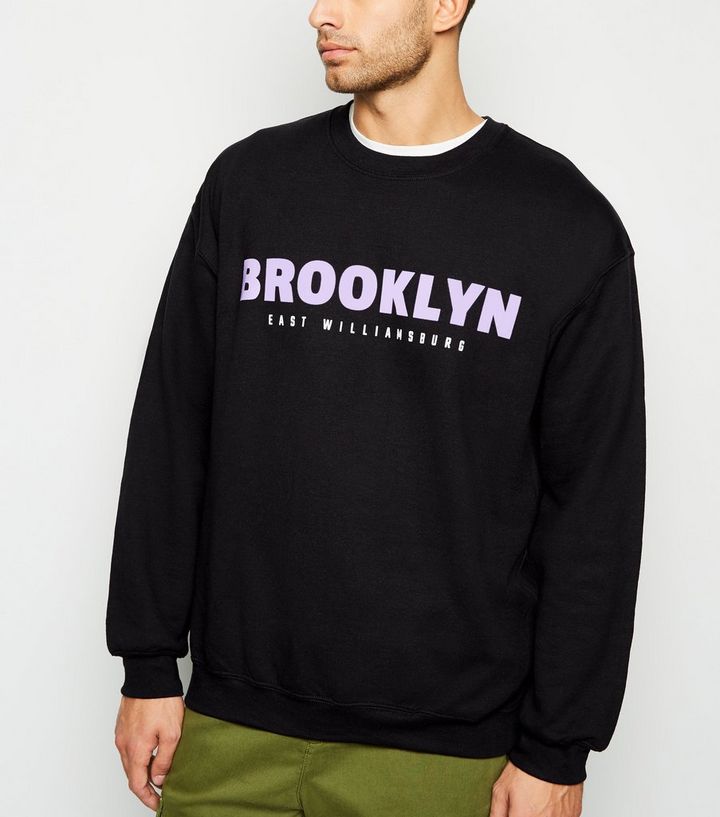 Schwarzes Oversize Sweatshirt Mit Brooklyn Slogan New Look