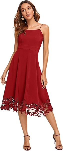 Spaghettitrager Kleid Knielang Mit Seitenschlitz Rot Aktuelle Trends Gunstig Kaufen Shein Deutschland