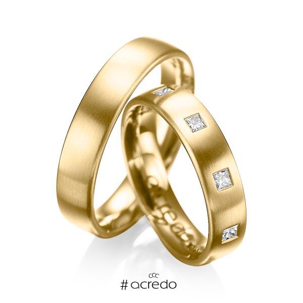 Paar Klassische Trauringe Eheringe In Gelbgold 750 Mit Zus 0 45 Ct Prinzess Diamant Tw Si Von Acredo A 1004 2