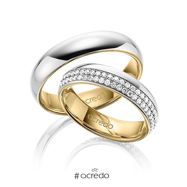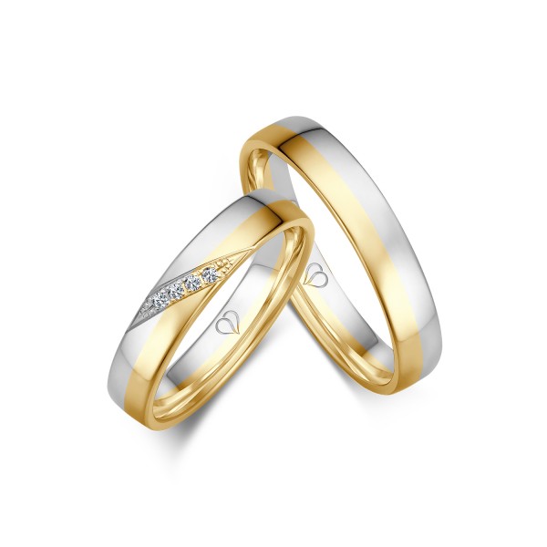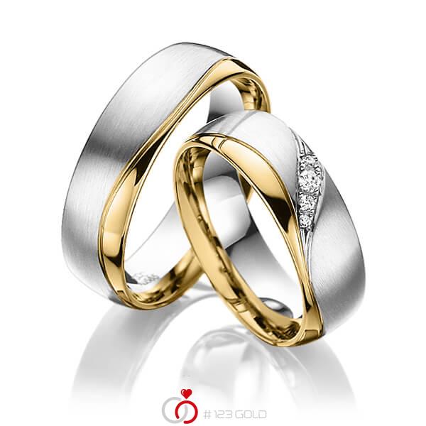 Paar Bicolor Trauringe Eheringe In Weissgold 750 Gelbgold 750 Mit Zus 0 06 Ct Brillant Tw Si Von Acredo
