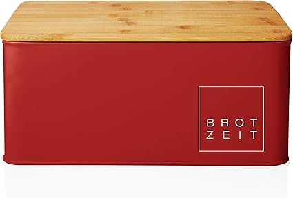 Lumaland Cuisine Brotkasten Brotdose Brotbox Aus Metall Mit Bambus Deckel Brotbehalter Rechteckig 30 5 X 23 5 X 14 Cm Rot Amazon De Kuche Haushalt