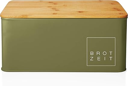 Lumaland Cuisine Brotkasten Brotdose Brotbox Aus Metall Mit Bambus Deckel Brotbehalter Rechteckig 30 5 X 23 5 X 14 Cm Olivgrun Amazon De Kuche Haushalt