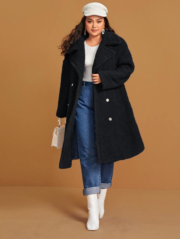 Zweifarbiger Teddy Mantel Mit Eingekerbtem Kragen In Grossen Grossen Aktuelle Trends Gunstig Kaufen Shein Deutschland