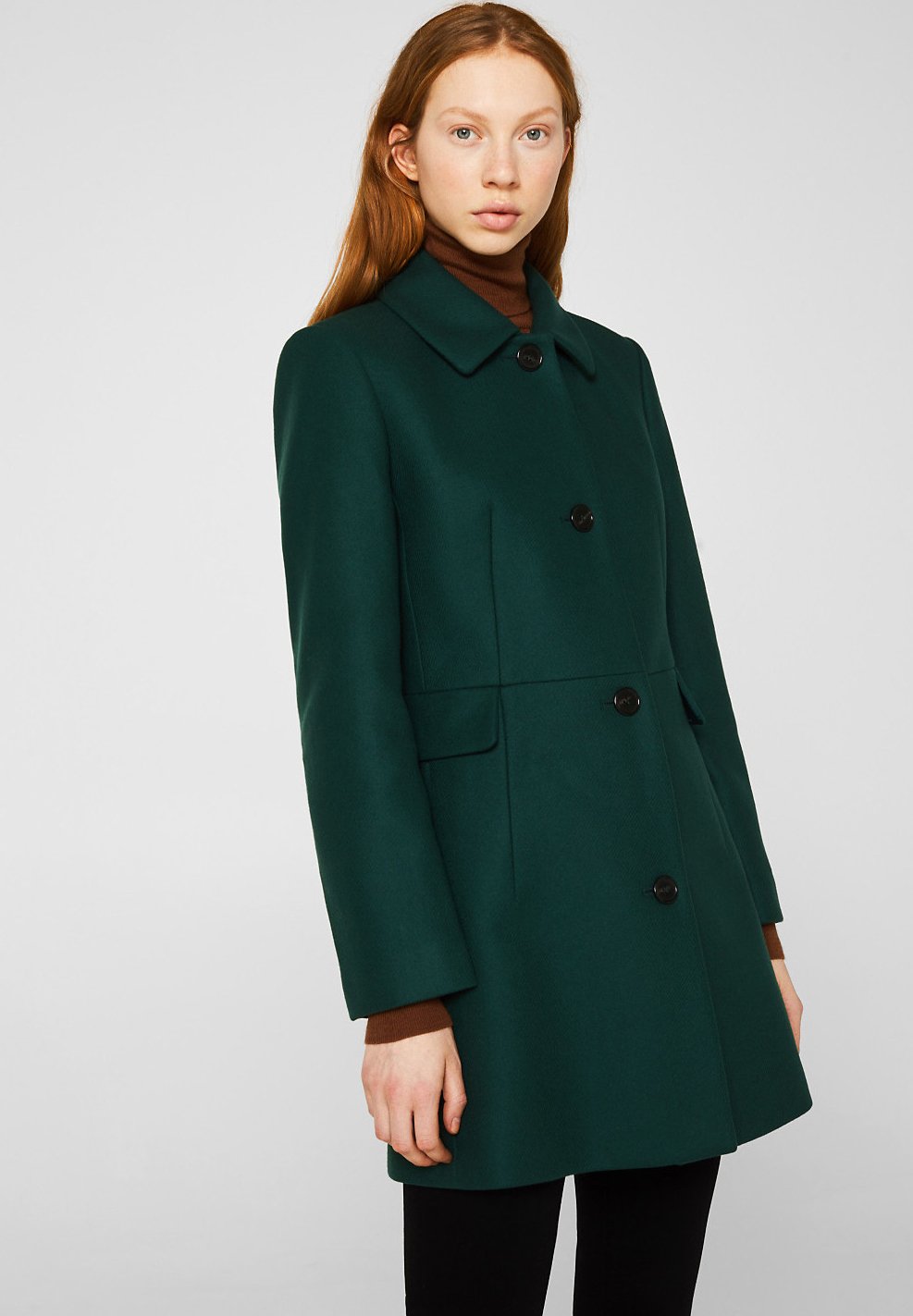 Esprit Collection Wollmantel Klassischer Mantel Dark Green Dunkelgrun Zalando At