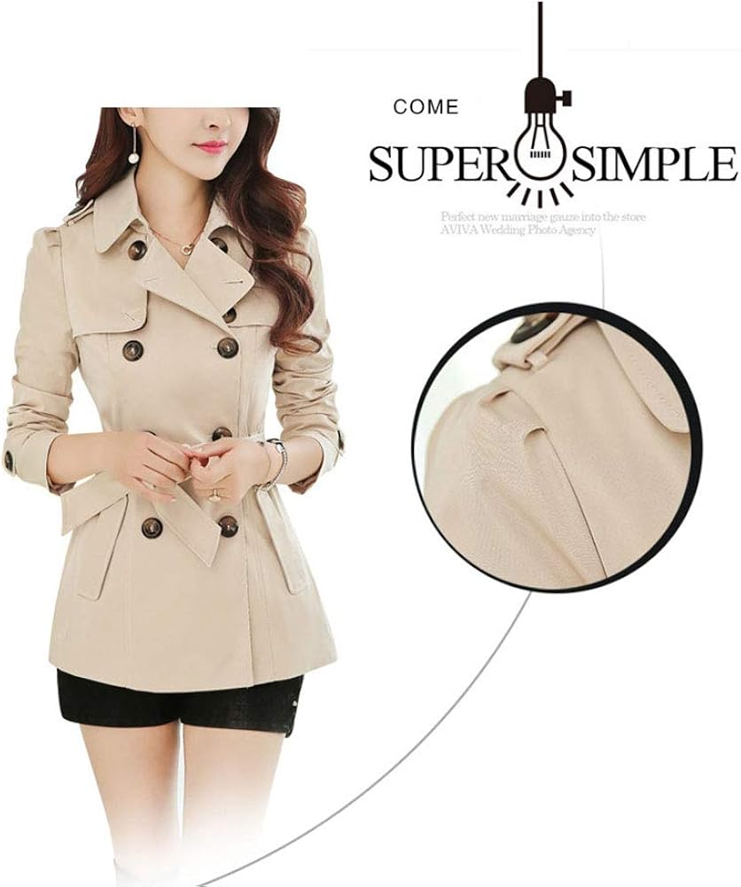 Damen Classic Pink Damen Kurz Trenchcoat Zweireihig Slim Revers Mantel Bekleidung Cerocero Mx