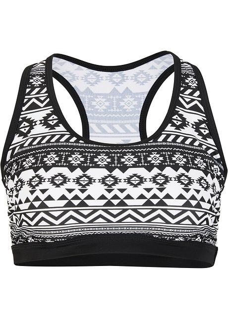 Sportives Bikini Top Mit Ringerrucken Und Ethno Druck Schwarz Weiss Gemustert
