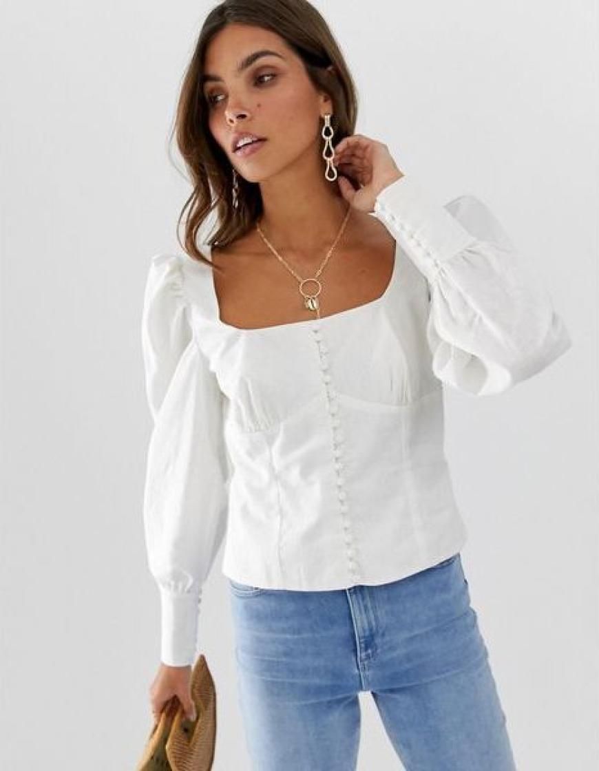 Geripptes Oberteil Mit Puffarmeln In Weiss Missguided