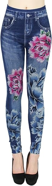 Damen Jeggings Jeans Optik Leggings Schlupfhose Treggings Muster Schmetterling Ebay