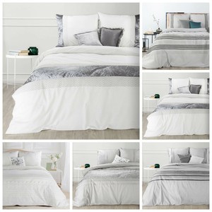 Weisse Baumwoll Bettwasche Mit Grauer Musterung