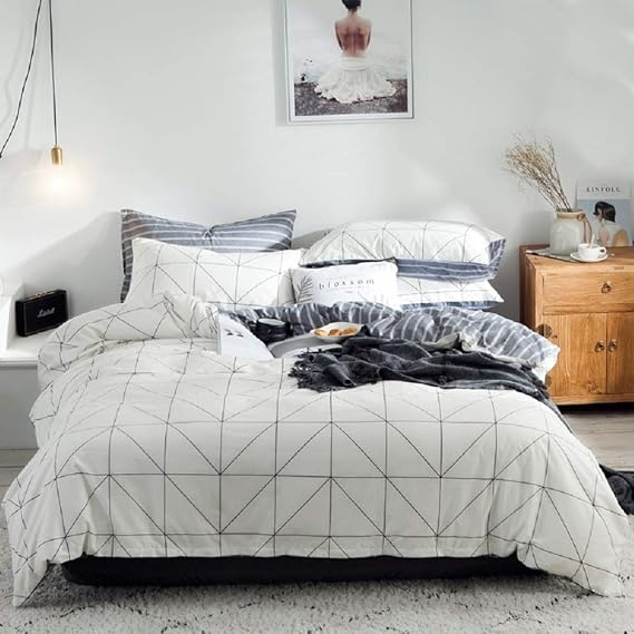 Getiya Dreiecke Bettwasche Weiss Schwarz Bettwaesche Geometrisch Muster 3 Teilig Bettwasche Paare Set 0x0 Weiss Streifen Gemustert Hotelqualitat Bettbezug With 2 Kissenbezuge Amazon De Kuche Haushalt