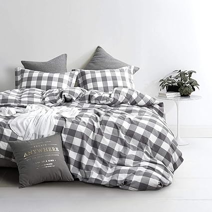 Lanqinglv Bettwasche 2x240cm 3 Teilig Reissverschluss Weiss Grau Kariert Muster Bettwasche Renforce Bettbezug Mit 2 Kissenbezuge 80x80cm Rajl 2x240 Amazon De Kuche Haushalt
