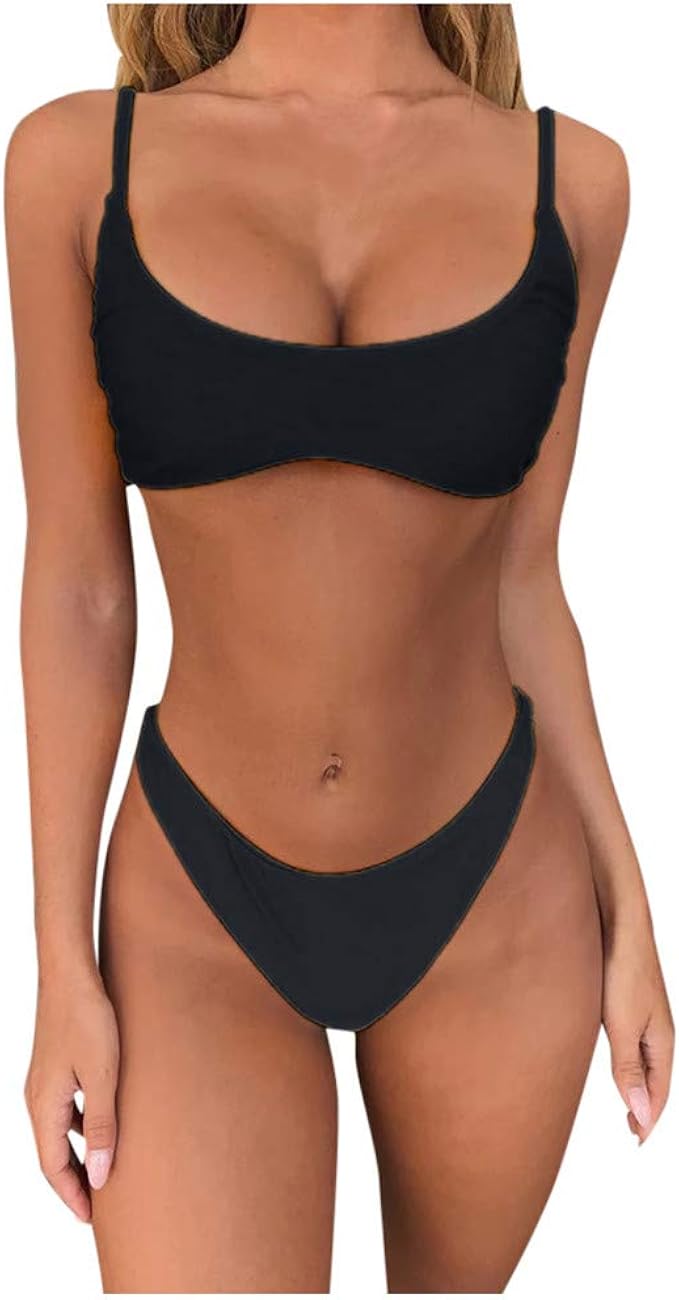 Lopily Sport Bikini Set Damen Schwarz Spaghettitrager Bikinioberteil Sportlich Badeanzug Hoch Ausschnitt Bikinihose Reizvolle Bademode Frauen Sportbadeanzuge Einfarbig Schwarz Xl Amazon De Bekleidung