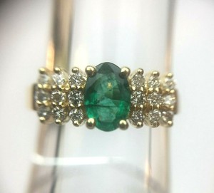 B H Effy Oval Green Emerald Round Diamonds 14k Yellow Gold Ring Band Vintage Ebay