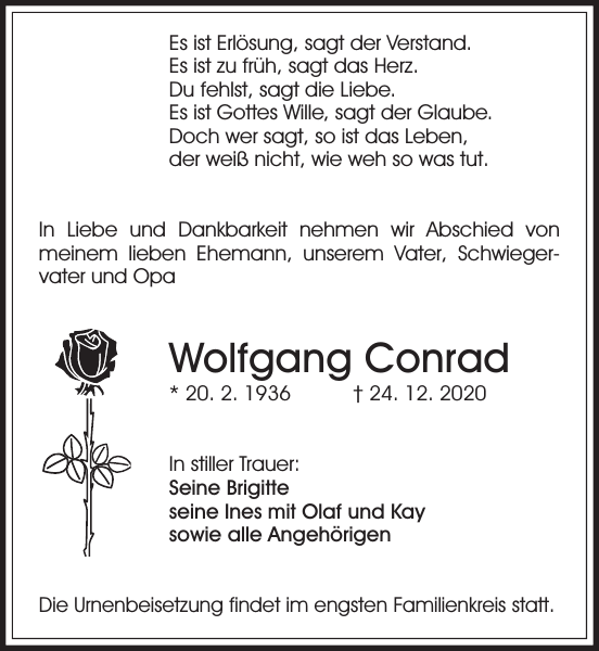 Wolfgang Conrad Traueranzeige Sachsische Zeitung