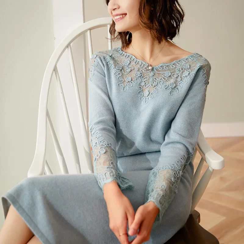 Neue Frauen S Kaschmir Kleid Lange Hulse Spitze Stickerei Stricken Bodenbildung Aussere Tragen Kleider Aliexpress