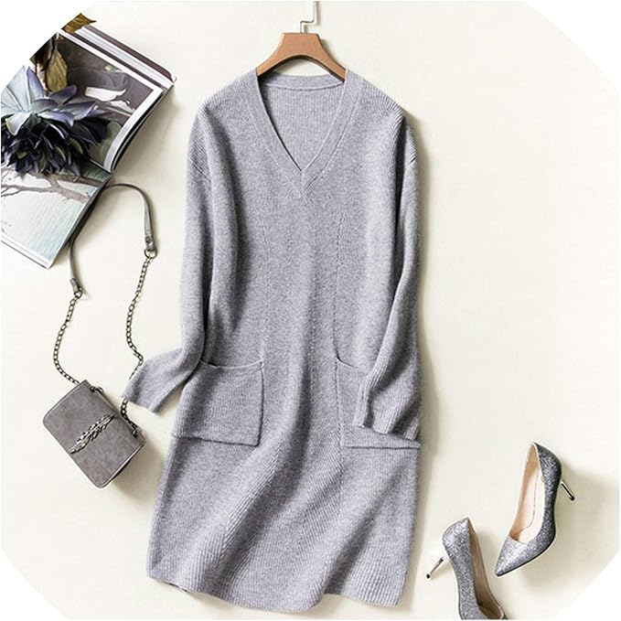 Firm Case Frauen Kaschmir Pullover Lange Zwei Taschen Kleid Mit V Ausschnitt Frau Wolle Pullover Grau S Split Amazon De Bekleidung