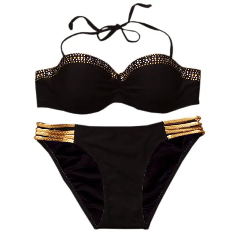 Push Up Bikini Set Schwarz Nieten In Gold 38 42 Cup B 972 Sitzt Super Neu Ebay