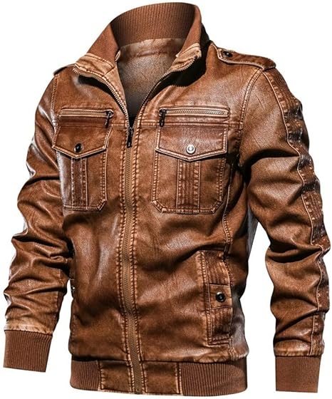 Nm Fashions Herren Lederjacke Used Look Braun Amazon De Bekleidung