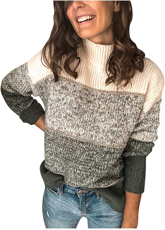 Lulupi Rollkragenpullover Damen Strickpullover Colorblock Rundhals Strickpulli Warmer Farbblock Winterpullover Gestrickter Pulli Sweater Jumper Amazon De Bekleidung