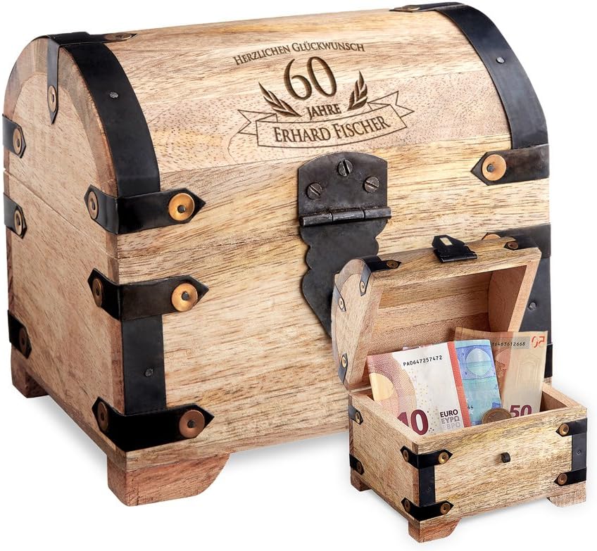 Zum 60 Verpackung Fur Geld Und Gutscheine Geschenkidee Fur Manner Und Frauen Casa Vivente Schatztruhe Mit Gravur Personalisiert Mit Namen Geburtstag Aufbewahrungsbox Aus Hellem Holz Wohnaccessoires Deko Kuche Haushalt Wohnen