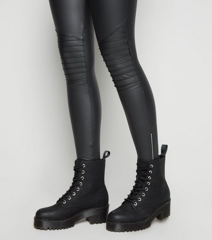 Schwarze Beschichtete Biker Leggings In Leder Optik New Look