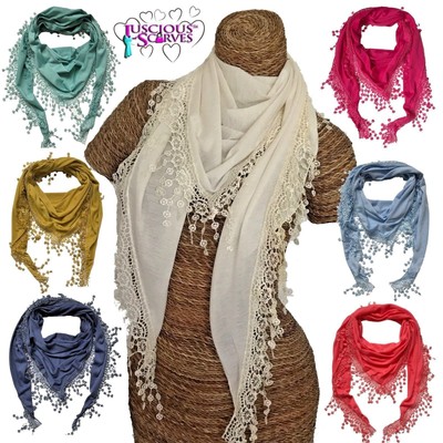 Damen Accessoires Ladies Jersey Triangle Triangular Soft Scarf Shawl Lace Edging Soft Kleidung Accessoires Thelanguagemall Org