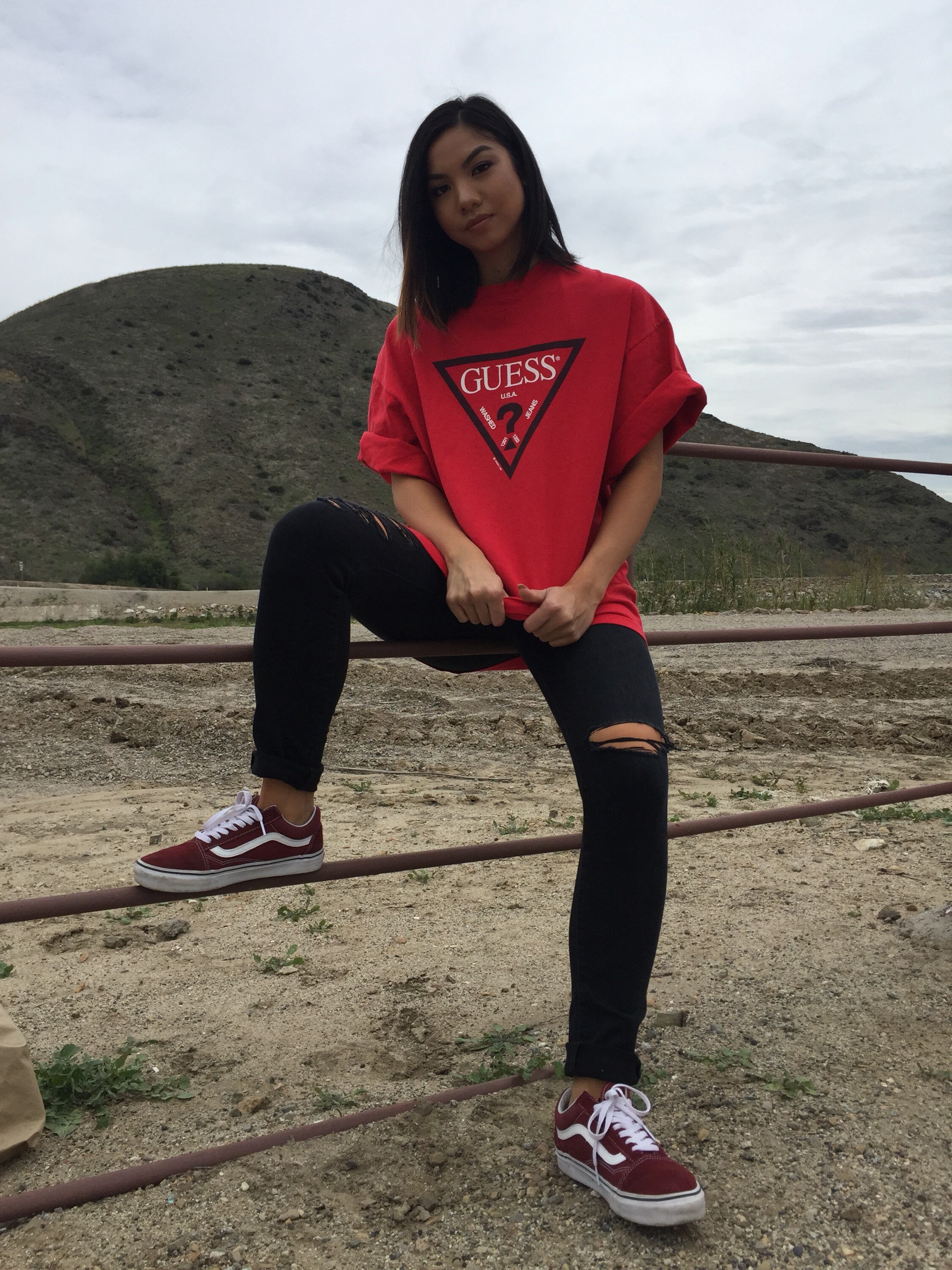 T Shirts Kleidung Accessoires Guess Oversized Vintage Triangle Logo Unisex T Shirt Tranhdepviet Vn