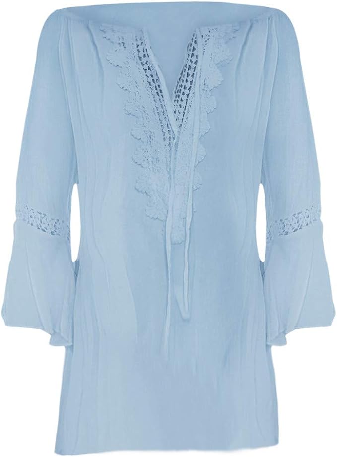 Battnot Damen Oberteile Elegant Sommer Herbst Locker Grosse Grossen Spitze Patchwork Weiss Blusen Frauen T Shirt Vintage Langarm V Ausschnitt Freizeithemd Strand Pullover Tunika Womens Tops S Xxxxxl Amazon De Bekleidung