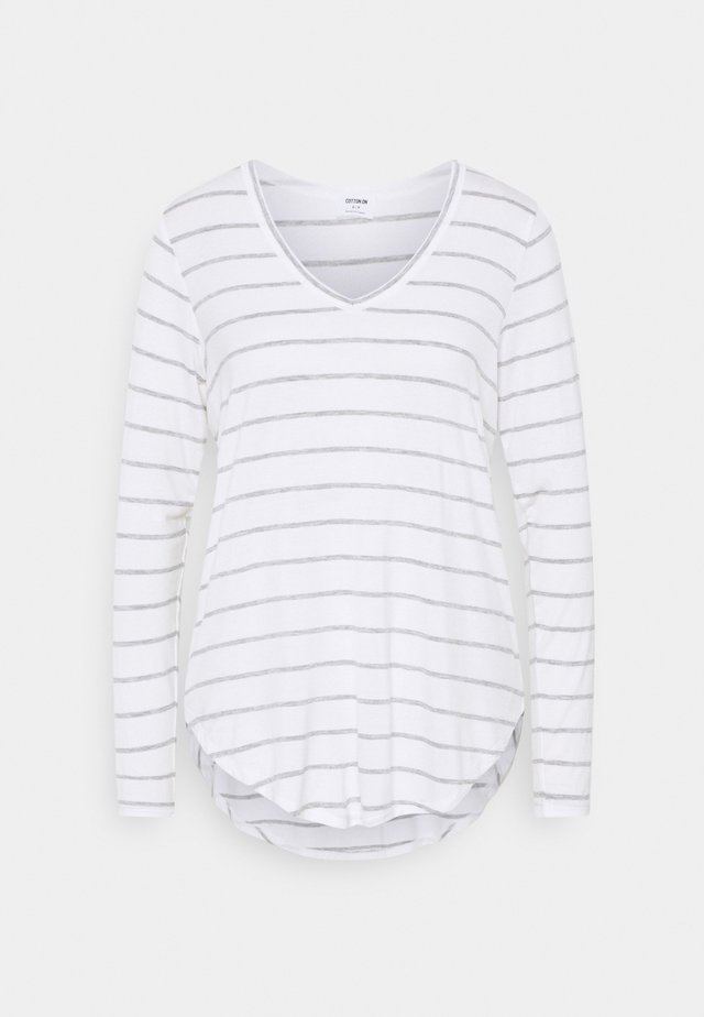 Weisse Knopfen V Ausschnitt Langarm Oversize Lassige Pullover Tops Oberteile Damen Mode T Shirts Oberteile