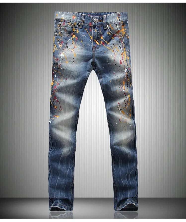 Grosshandel Herrenmode Farbige Gemalte Jeans Mannliche Beilaufige Gewaschene Dunne Denimhosen Lange Hosen Von Adidasstore 47 34 Auf De Dhgate Com Dhgate