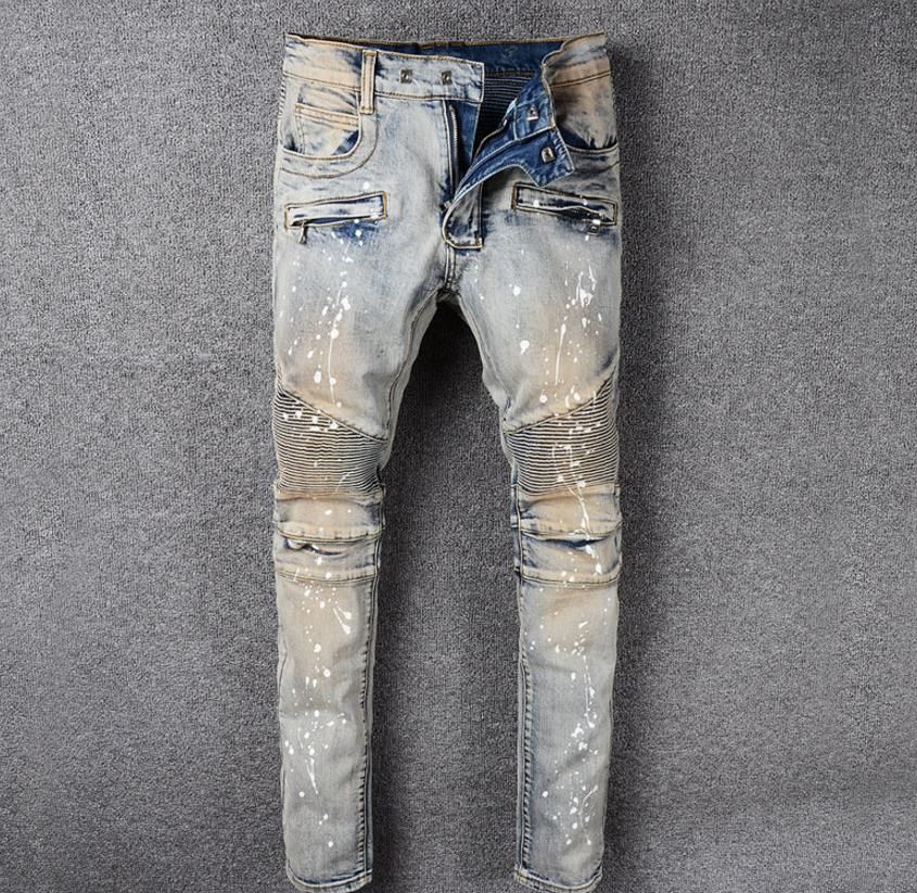 Grosshandel Beruhmte Marke Paris Herren Destoryed Biker Denim Ol Gemalt Farbige Jeans Herren Blau Biker Jeans High Quality Von Jackhuang 37 94 Auf De Dhgate Com Dhgate
