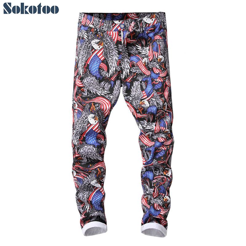 Grosshandel Sokotoo Manner Amerikanisches Flage Adler Gedruckt Jeans Trendy Habicht Farbige Zeichnung Muster Gemalt Hosen Herren Jeans Von Odalis 33 26 Auf De Dhgate Com Dhgate
