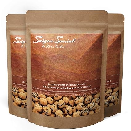 Saigon Special Ganze Erdnusse Im Kokosmilch Reisteigmantel Mit Schwarzen Sesamkernen Gerostet 3x250g Gluten Und Laktosefrei Premium Qualitat Aus Vietnam Von Kleinbauern Angebaut Knackig Lecker Amazon De Lebensmittel Getranke