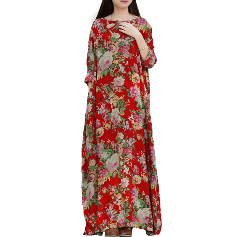 Lzjn Spring Autumn Dress Women Long Sleeve Cotton Ethnic Floral Maxi Dresses Vestidos Blumenkleid Vintage Chinese Robe Femme Robe Femme Floral Maximaxi Dress Aliexpress