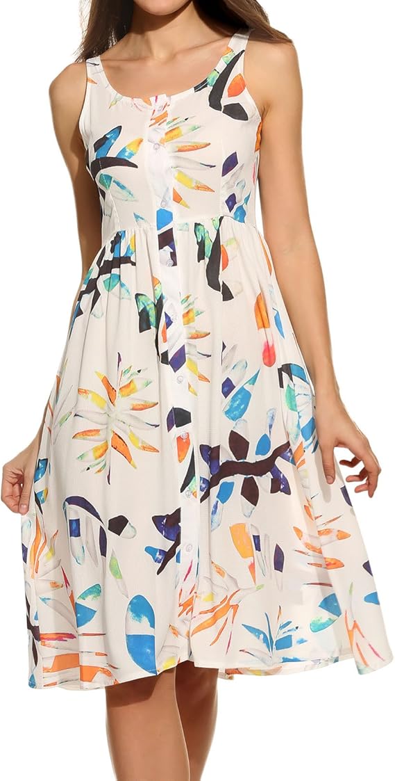Zeagoo Damen Armellos Rundhals Strandkleid Tragerkleid Blumenkleid Bedrucktes Sommerkleid Partykleid Freizeit Casual Knielang Weiss Schwarz Weinrot Blau Gr S Xxl Xl Weiss Amazon De Bekleidung