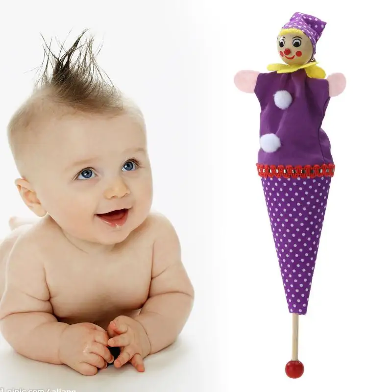 Baby Holz Padagogisches Spielzeug Clown Cartoon Rassel Spielzeug Versenkbare Lachelndes Clown Verstecken Suchen Spielen Jingle Glocke Fur Kinder Puppen Marionetten Aliexpress